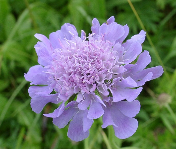 Цветки, диаметром до 6 см, собраны в головки на длинных цветоносах и красиво выделяются на темном фоне.