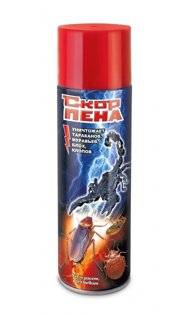 Средство инсектицидное от тараканов, муравьев, мух, клопов в виде пены в аэрозольной упаковке.